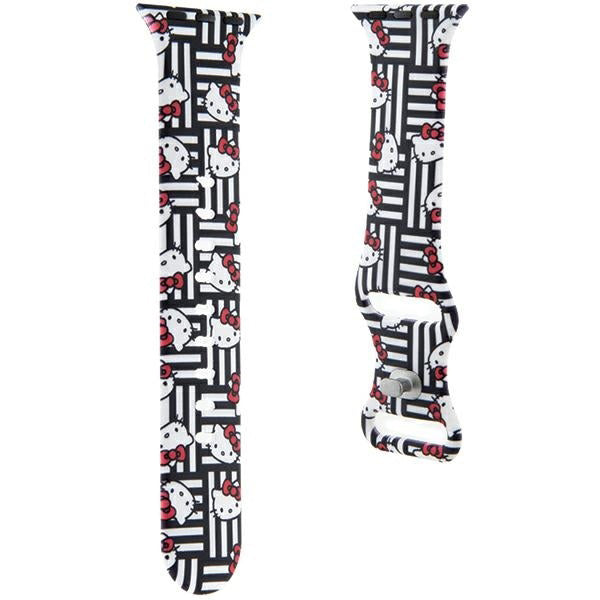 Hello Kitty Silicone Kitty Heads & Stripes Strap for Apple Watch 42mm / 41mm / 40mm / 38mm Series, Black