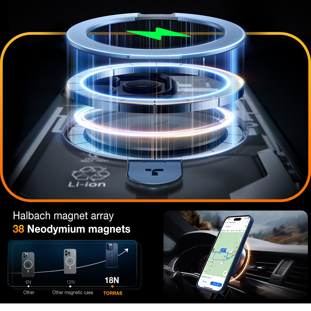 The Torras case features X-Shock airbags, strong magnets, and a frame composed of multiple layers.
