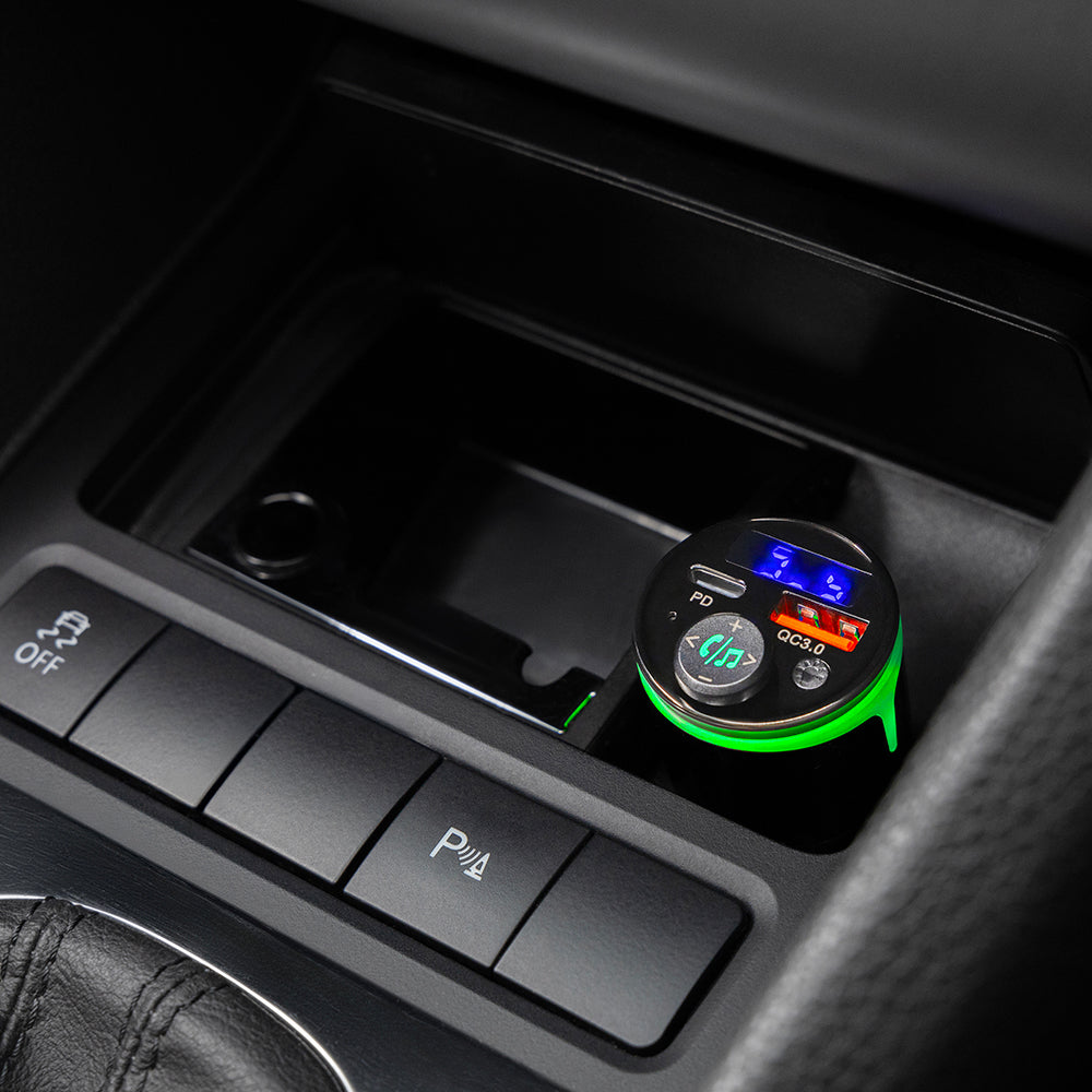 Enjoy clear calls and uninterrupted music with the Proove FM modulator. Don't wait any longer! Purchase the car charger with FM modulator now! Bluetooth Hands-Free for clear calls This premium FM modulator offers a stable Bluetooth connection for hands-free calls, with an integrated microphone and a multifunctional button for call management. Digital display The car charger features a digital screen that displays the FM frequency and the voltage from the car socket. Order the Bluetooth FM modulator now! Specifications: Material: aluminum; Bluetooth version: V.5.3; Ports: USB, Type-C; Input current: 12-24V; USB output current: 5V/3A, 9V/2A, 12V/1.5A; Type-C output: 5V/3A, 9V/2A, 12V/2.5A; USB power: 18W; Type-C power: 30W; Maximum power: 30W; Frequency: 87.5MHz-108MHz; Audio: WMA, MP3, WAV, APE, FLAC; Operating range: 10m; Compatibility: iOS, Android; Dimensions: 75 x 35 x 35mm; Weight: 85g.