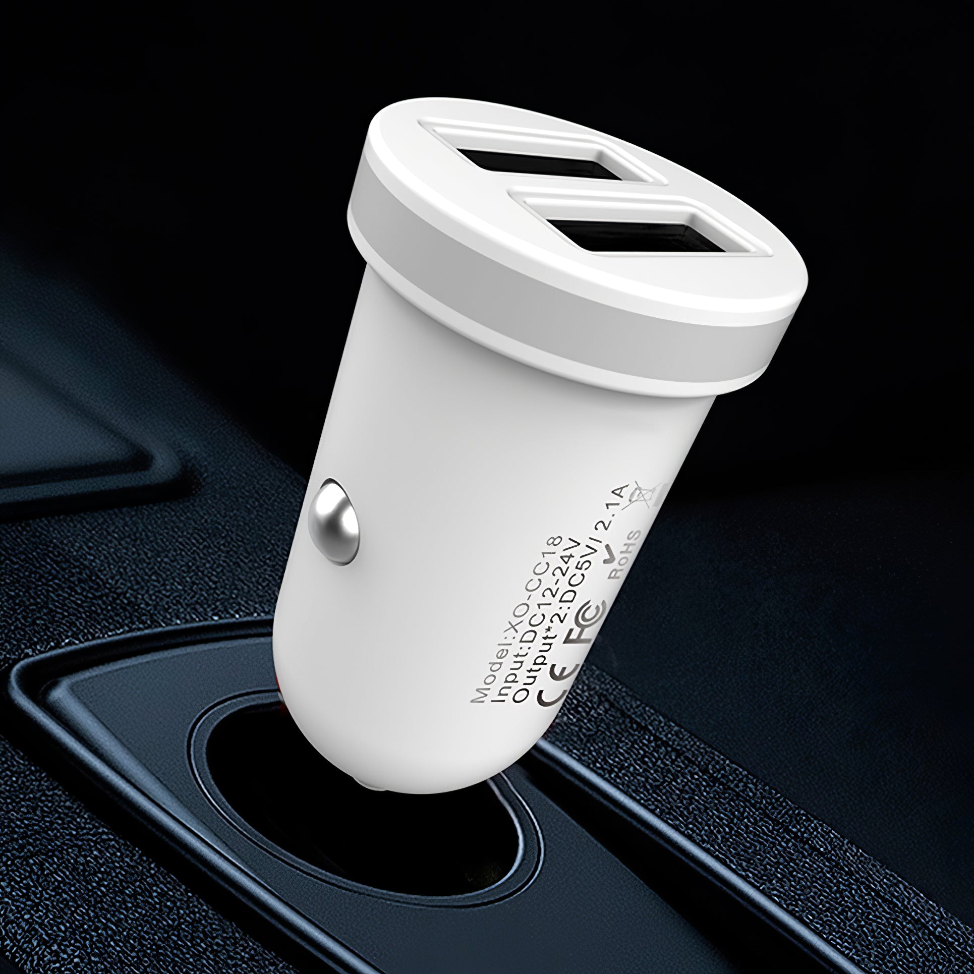 XO Design CC-18 Car Charger, 10.5W, 2.1A, 2 x USB-A, White