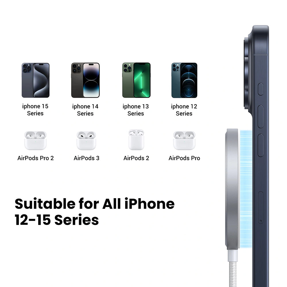 Kompaktná a ľahká, UGREEN W703 je perfektná pre každodenné používanie aj pre cestovanie, kompatibilná s iPhone 12 až iPhone 16,