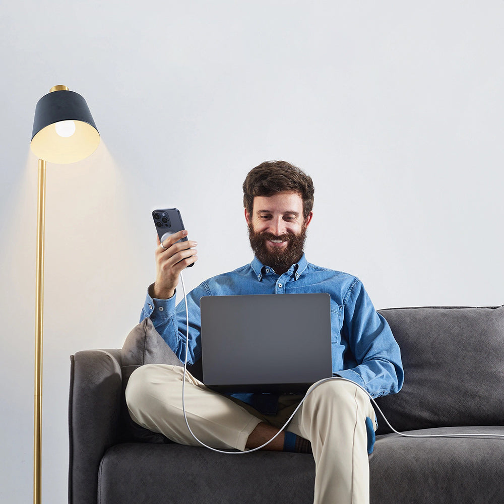 bez ďalších káblov. Je vybavená integrovaným USB-C káblom, dĺžky 1.5 metra, s textilnou ochranou proti opotrebeniu a zamotaniu.