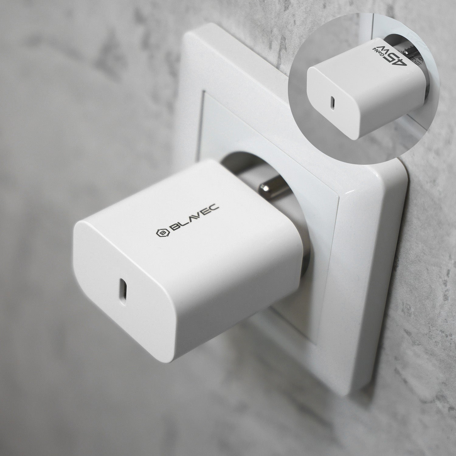 Sieťová nabíjačka Blavec BC-7 je vybavená portom USB Type-C PD s výkonom 45W, ktorý poskytuje rýchle a stabilné nabíjanie pre smartfóny, tablety,